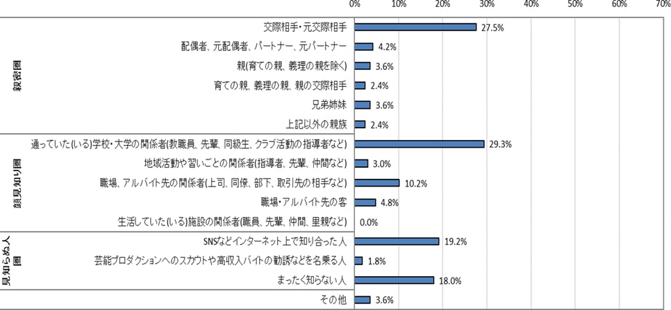 「若年層の性暴力被害の実態に関するオンラインアンケート及びヒアリング結果」報告書(令和4年3月 内閣府男女共同参画局)